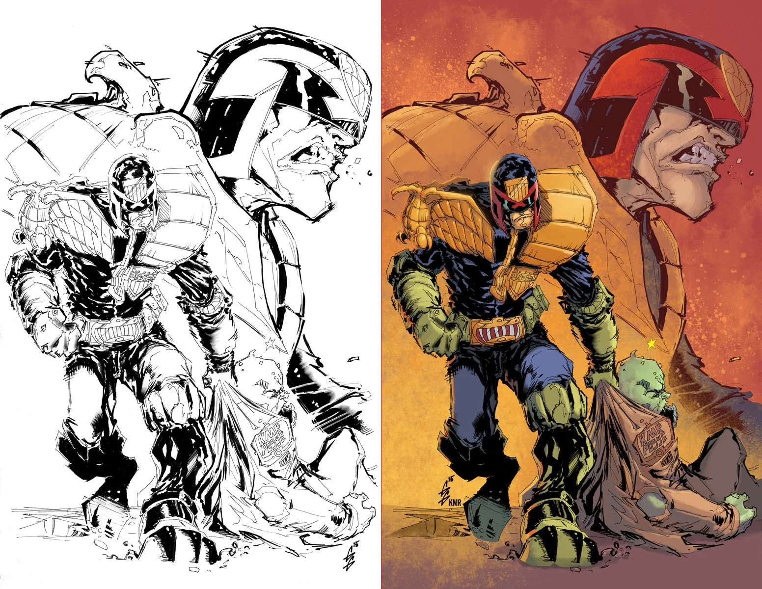 Lines by Geoffrey Gwin. Colors by me. This was a lot of fun! JUDGE DREDD collab with Geoffrey Gwin K. Michael Russell January 11, 2015